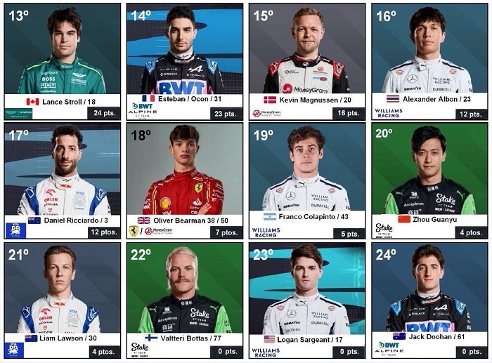 George Russell consiguió su segunda victoria de la temporada tras un gran fin de semana en el que, partiendo desde la pole gracias a su mejor tiempo en calificaciones, supo conservar su privilegiada posición en el arranque de carrera, a pesar de la teórica ventaja que presentaba la opción de Max Verstappen de iniciarla con neumáticos blandos. El británico se mantuvo firmemente en cabeza, distanciándose paulatinamente de sus adversarios hasta completar una gran actuación, favorecido por la perfecta adaptación de su Mercedes al complicado trazado de Marina Bay, como lo confirma la quinta posición conseguida por Andrea Kimi Antonelli.